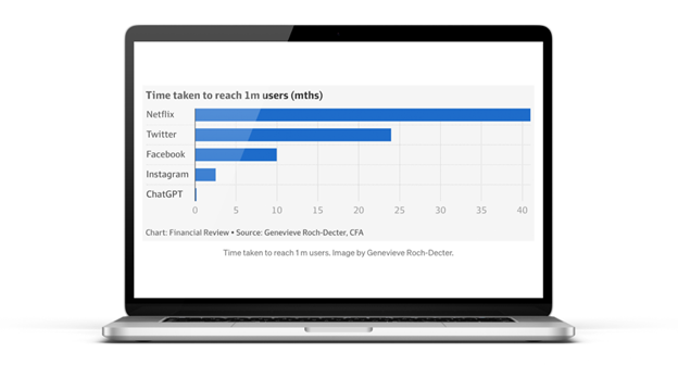 To illustrate just how massive its impact is, check out this mindblowing stat: it surpassed giants like Netflix in user adoption. It took Netflix over 40 months to reach 1 million users, while it only took ChatGPT one week to achieve the same. Take a look at the figures: